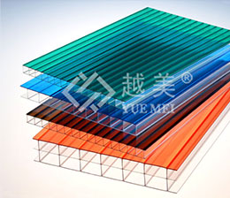 越美牌PC雙色陽光板是中空板的一種特殊產品,該產品外觀特殊,分為上下兩種顏色,室內重新營造另外一種色調氛圍